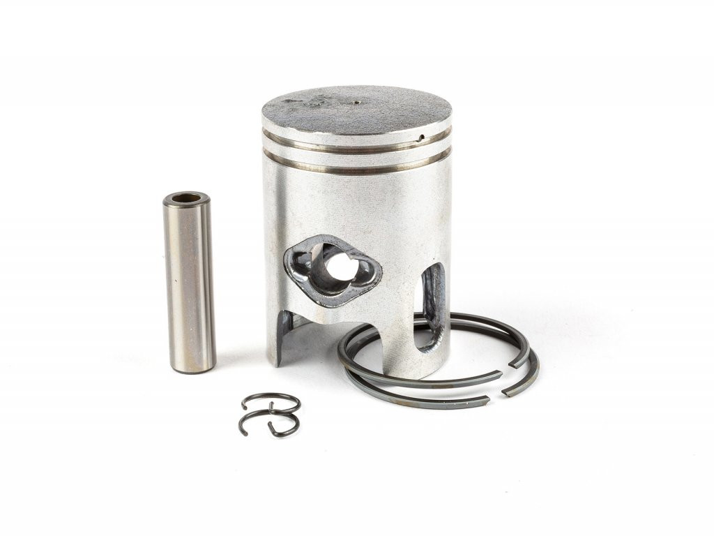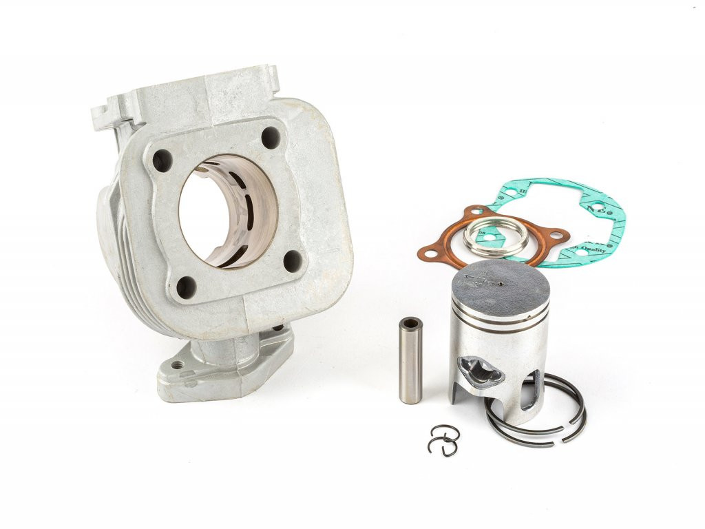 Motoforce Alumínium 50ccm-es henger állóhengeres Minarelli motoros robogókhoz. A hengerszett minősége sokkal magasabb, mint a gyári alkatrészé. A teljesítménye is magasabb, körülbelül 2Le-vel. Az alkatrész karakterisztikája a gyári hengerhez képest élesebb ennek köszönhetően magasabb fordulatot érhetünk el vele. Amennyiben a gyári alkatrész tönkrement, vagy egy erősebb, jobb tulajdonságokkal rendelkező 50ccm-es hengert szeretnénk, akkor ez bizonyulhat a legjobb megoldásnak. A dugattyú 10mm-es csapszegátmérővel és a gyári alkatrészhez hasonlóan két darab gyűrűvel érkezik. Az alumínium öntvénynek köszönhetően, az alkatrész hőelvezetése kiváló, ami nagyon nagy előnyt jelenthet egy forró nyár során.